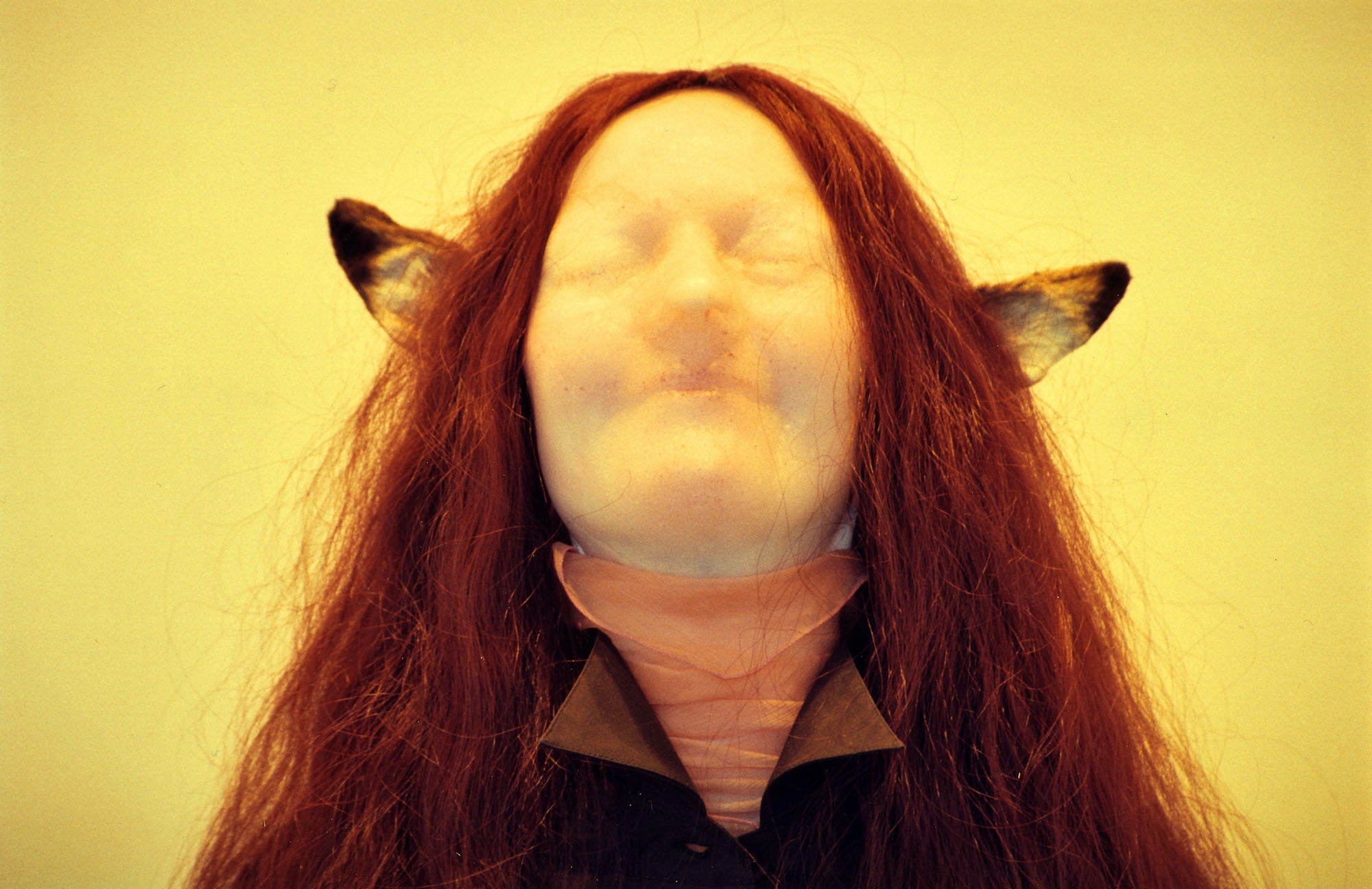 wax, rabbit ears, clothes, chair, bubble, DVD video projection