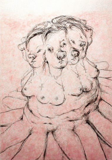 crayon, make-up, 100 x 70 cm