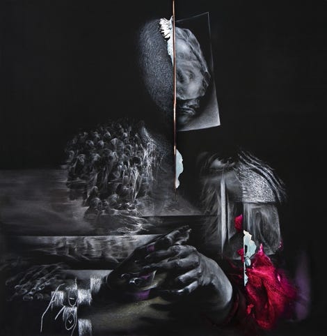graphite, charcoal, acrylic,
