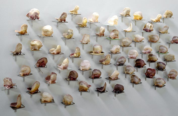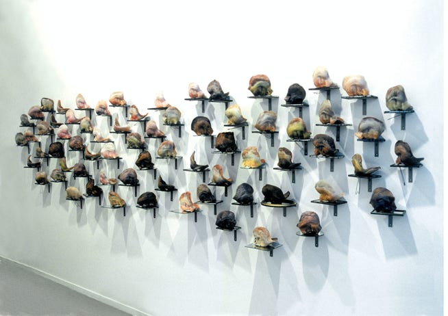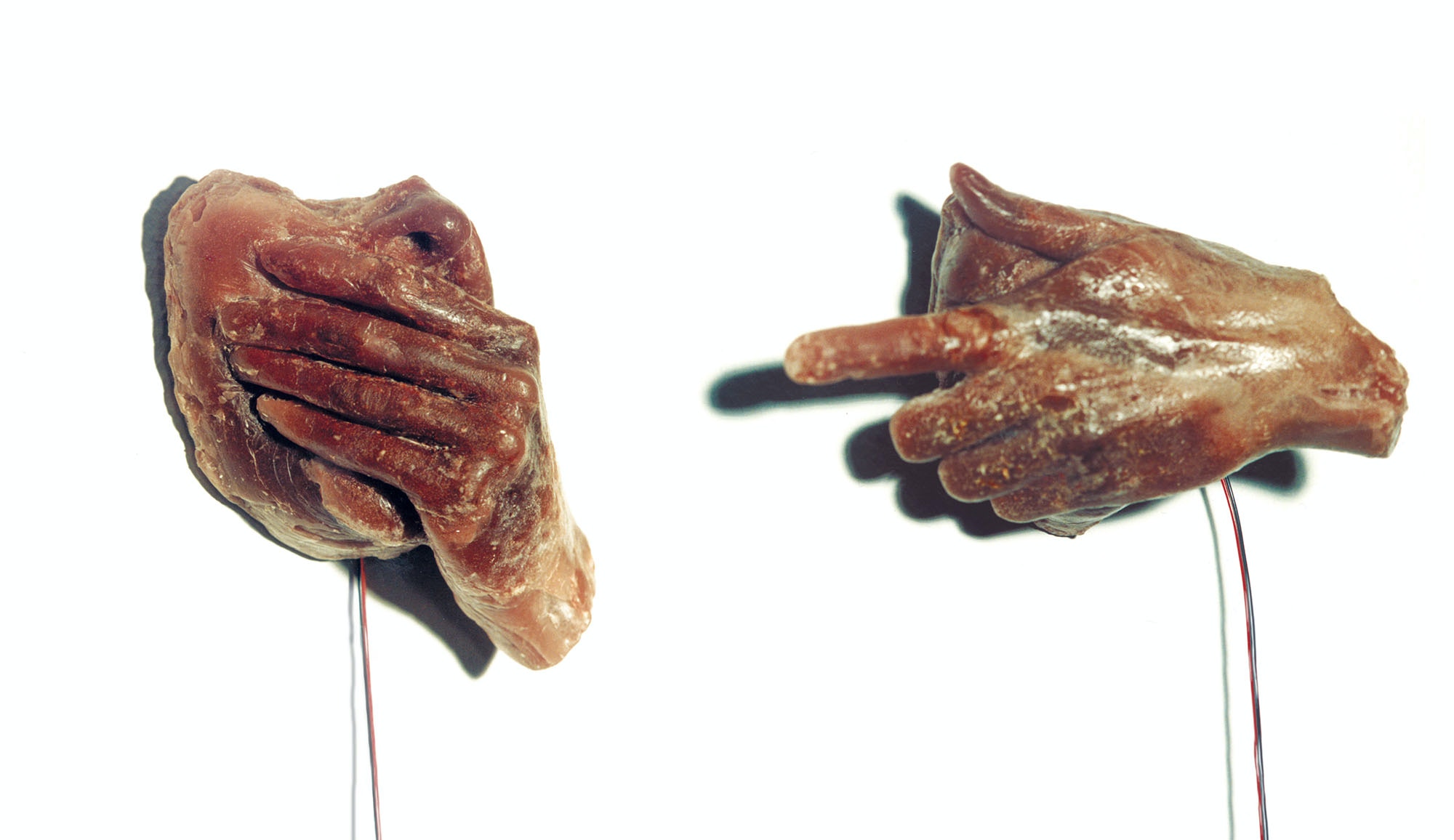 wax, sound: 2 speakers, walkman, 13 x 20 x 7 (x 2) cm