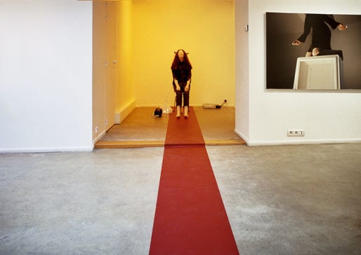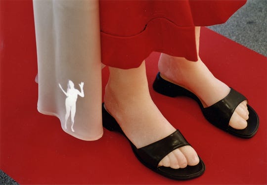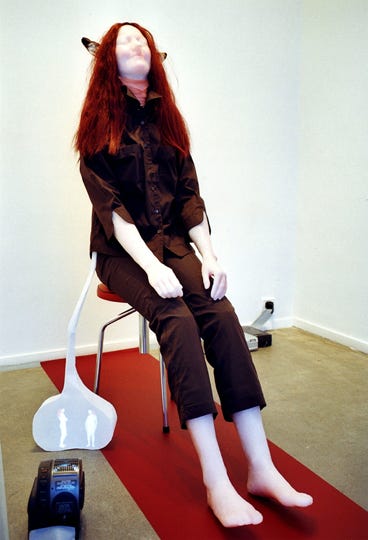 wax, rabbit ears, clothes, chair, bubble, DVD video projection