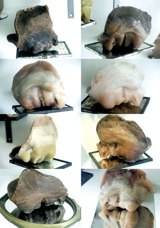 wax, sound: 2 speakers, walkman, 13 x 20 x 7 (x 2) cm