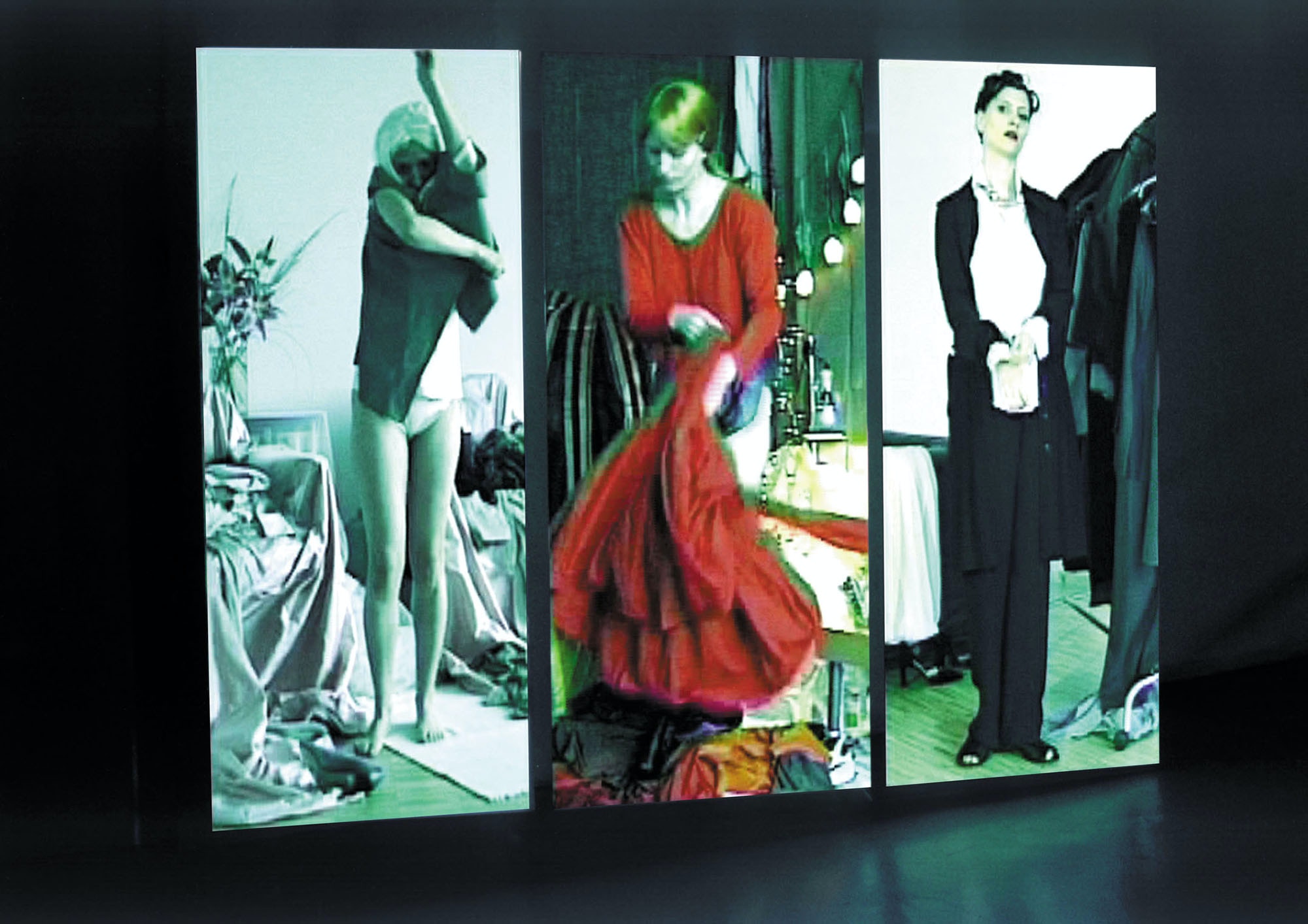 DVD video projection on 3 translucent screens / 30 min / loop, sound, 200 x 265 cm