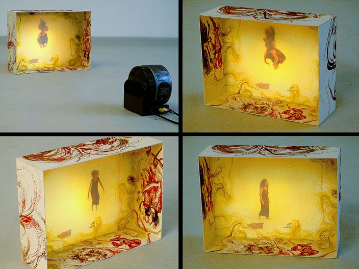 DVD video projection / 5 min / loop, sound, cardboard box with