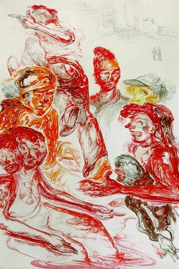 crayon, 220 x 144 cm