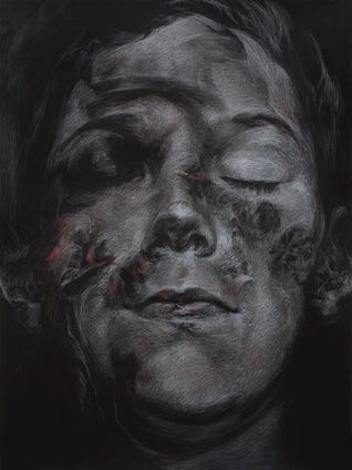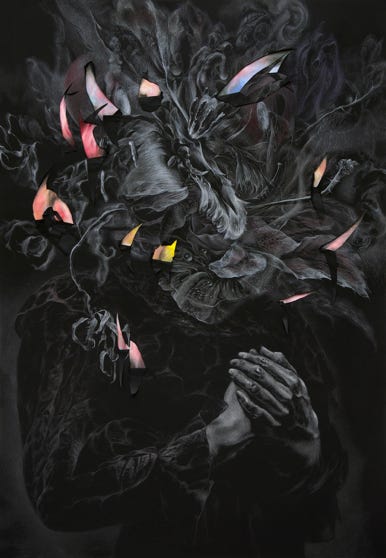 various crayons, acrylic on paper,