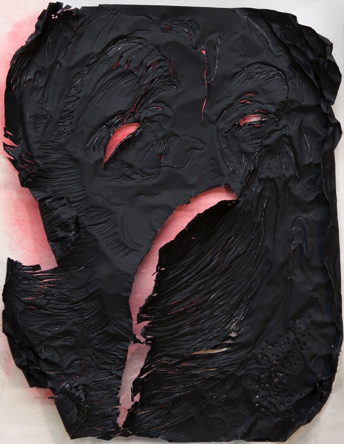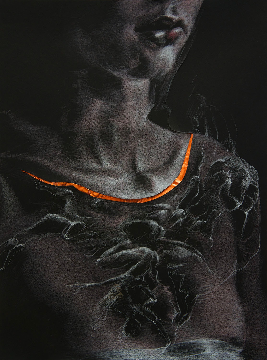 various crayons, copper, paper cut-out on paper, 40 × 30 cm