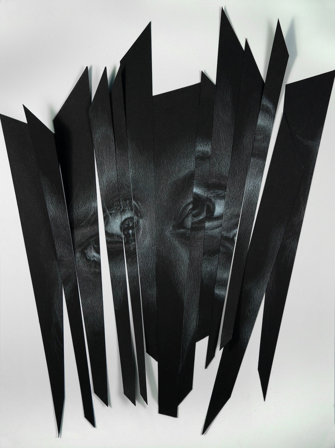 various crayons, paper cut-out and copper on paper, 30 x 25 cm, 40 × 30 cm framed
